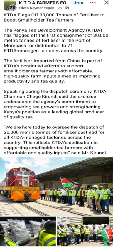 KTDA Flags Off 30,000 Tonnes of Fertiliser to Boost Smallholder Tea Farmers